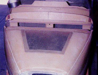 The nose bottoms are cut to size from 2-in thick urethane foam and bonded to NG-30, F-22 and F-0. After cure, the inside bottom pieces are glassed with BID. The nose sides are cut from 2-in thick urethane foam to size and dished out for the correct internal contour and glassed on the inside surfaces with a couple of inches of glass overhanging. While still wet they are laid on the nose bottom and the overhang is wet out onto the bottom pieces and allowed to cure.