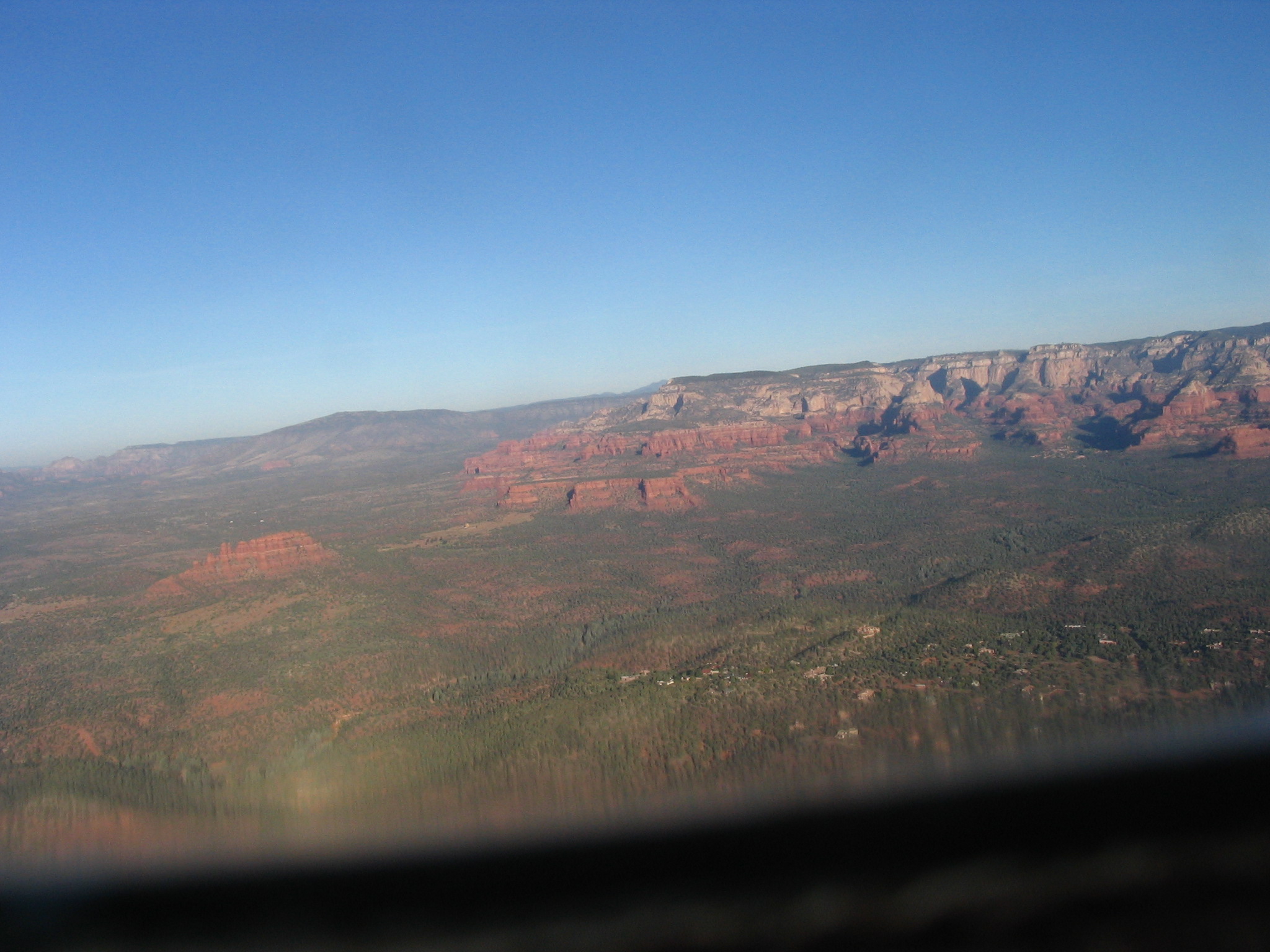2005 Sedona, AZ On November 5, 2005 my middle daughter Kara and me planned a date in Sedona for breakfast. We left Chandler at 7:30 after cleaning up the plane a bit and departed east so that I could over fly a co-workers house on the way out. As it turns out, he decided to sleep in and didn't see us pass over! We diverted around Williams Gateway airport to the east and then headed direct to Sedona for the remainder of the flight. That took us just west of the Superstition mountain range, over a couple of the mountain reservoirs and into the Sedona Redrocks. The air was perfectly smooth, about 50 degrees F at elevation (6500ft) and visibility was at least 50 miles. We settled into a smooth cruise at 165kts and watched the sun bathe the mountains.